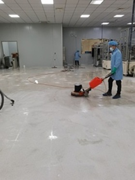 因地板沒做打蠟維護,使用三月后地板污染很嚴重,現(xiàn)對ESD防靜電地板進行清洗打蠟保養(yǎng)。